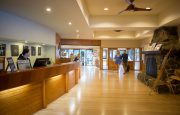 - Reception desk with after-hours security phone while Reception and main Lodge are closed