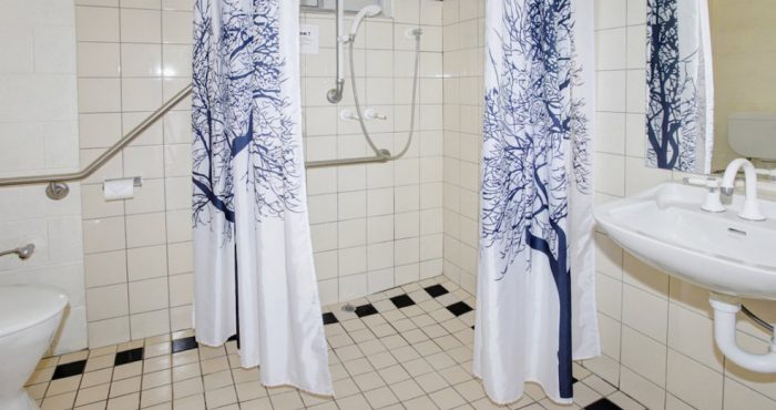 - Lowered hand basin 800mm from floor & lowered mirror.